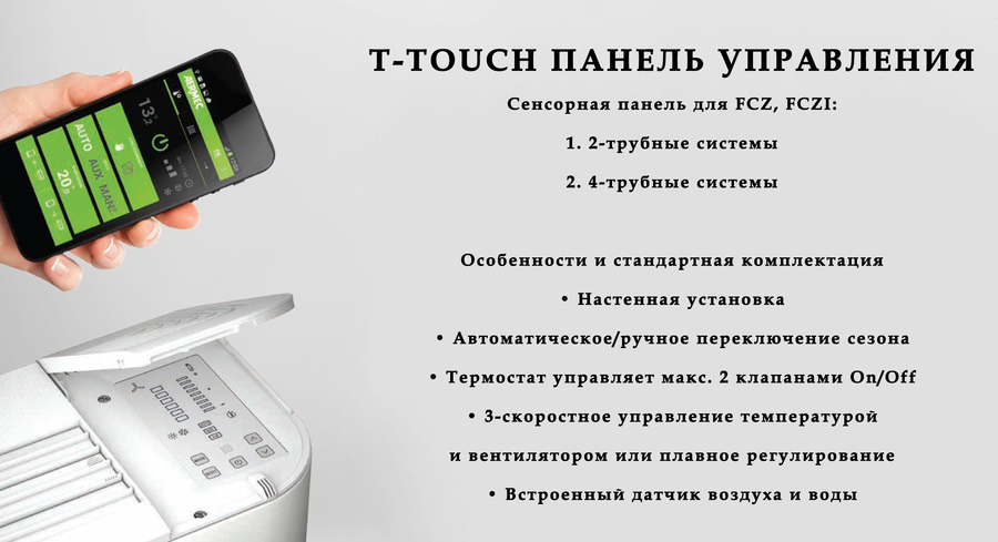 - FCZ_ACT — вертикальная установка, с электронной панелью управления (для 2-трубной системы).