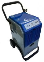 Мобильный осушитель воздуха промышленный конденсационного типа. Такие осушители находят широкое применение в строительстве и ремонте зданий, на складах, как промышленного назначения, так и бытового, подвальных помещениях, книгохранилищах, для сушки после затопления. На первом этапе влажный воздух пропускается через холодный теплообменник и влага осаждается в бак и дренажной помпой сливается. На втором этапе воздух пропускается через теплый теплообменник и нагревается, после чего подается в помещение.