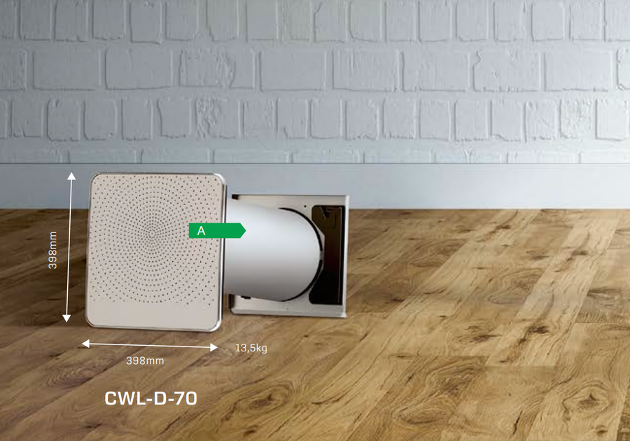 Компактная децентрализованная вентиляционная установка Wolf (Вольф) CWL-D-70 белая с преднагревателем с рекуперацией тепла, предназначенная для модернизации самых различных зданий: начиная офисами и квартирами, заканчивая помещениями свободного назначения. Благодаря съёмному пластиковому противоточному теплообменнику, который гарантирует до 80% возврата тепла, установка эффективна и комфорта в использовании даже в ограниченном пространстве.